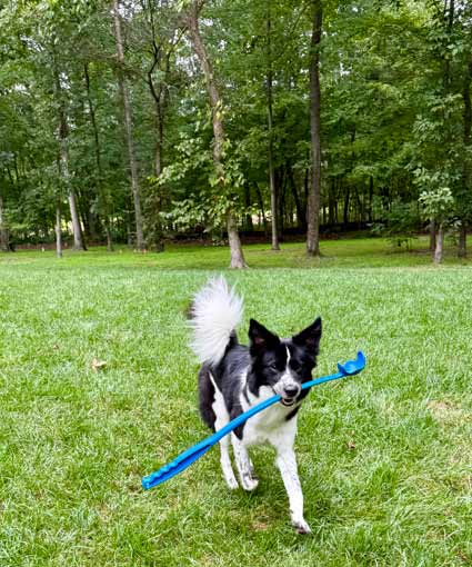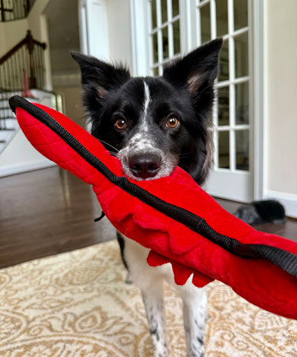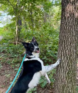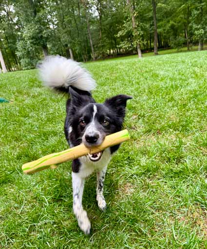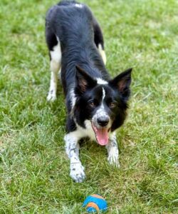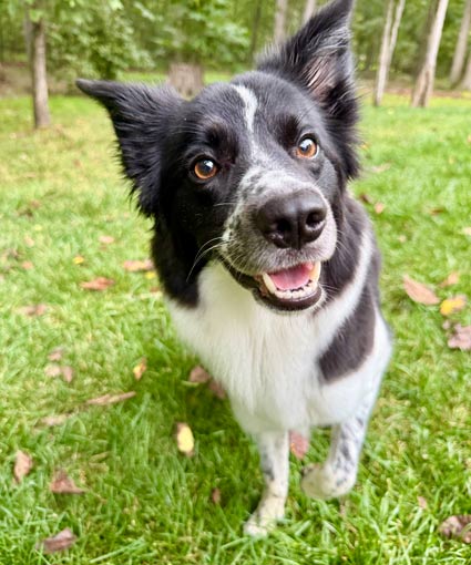 Stella possesses some of the typical Border Collie herding instincts and behaviors and would be more compatible with an experienced owner who can provide her with ample mental and physical stimulation and training. When indoors, she can experience a heightened sensitivity to certain everyday sounds, such as the clattering from a busy kitchen, which can spark excitement or, in some cases, cause a bit of anxiety. Knowing about this special trait, a seasoned Border Collie owner can create a calm and enjoyable environment for this incredible dog.